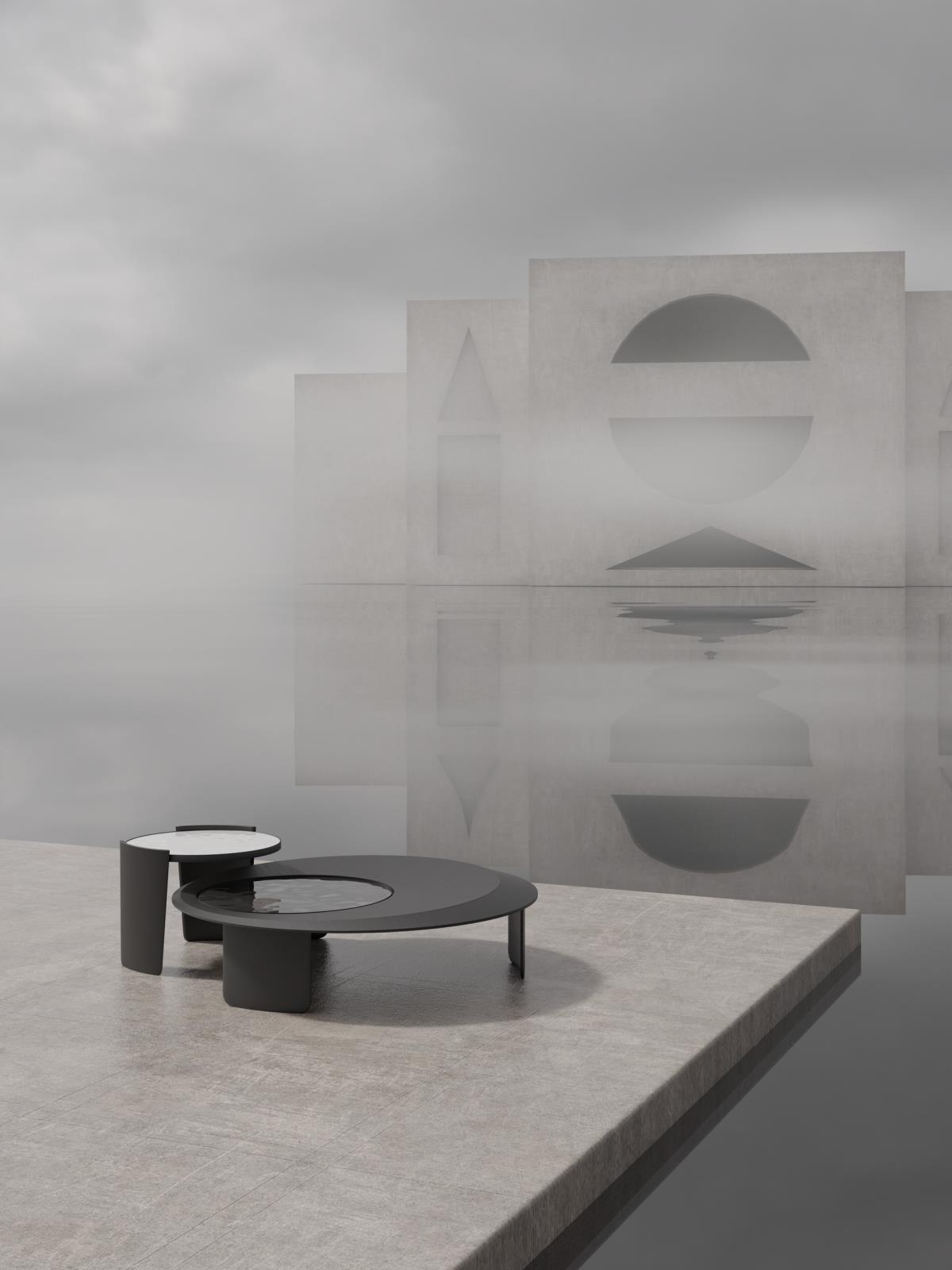 这一款设计独特的月亮几,黑白色调的搭配,同样的简约、貌美却不失硬朗之气。