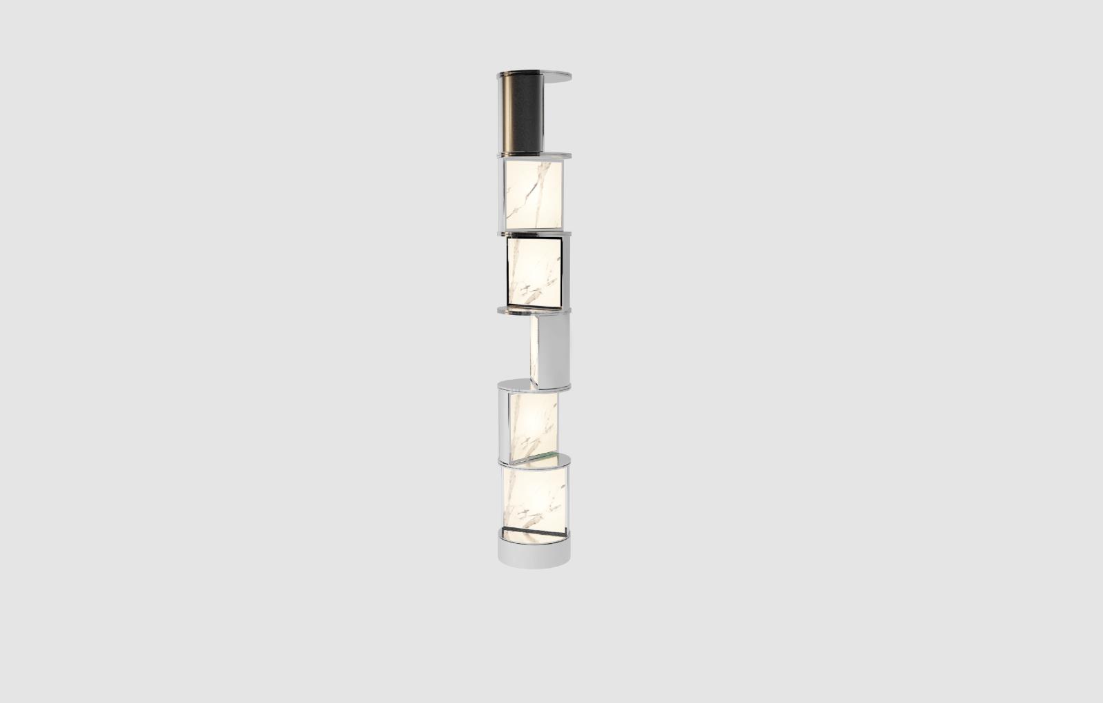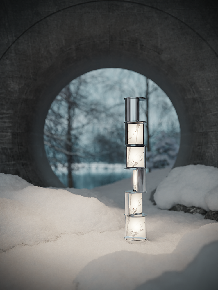 这一款新落地灯,区别于全石材的约瑟夫立灯,采用了浅白色透光白冰玉与金属的搭配,制作出可以旋转的结构,方便多方位取光,多了几分精巧灵活,也更多了几分烟火暖意。